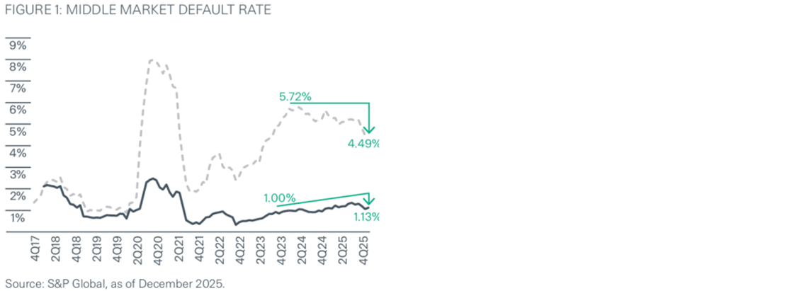In addition, several of the more widely publicized payment defaults have been incorrectly associated with direct lending, as many of the affected borrowers actually fall outside the traditional scope of the strategy. A significant number of these cases relate to large-cap issuers normally found in the broadly syndicated loan market and are not representative of the middle-market companies typically found in direct lending portfolios. Others involve asset-based lending structures rather than cash flow-based direct lending, reflecting a fundamentally different underwriting approach and risk profile. Furthermore, a number of these situations concern non-sponsored borrowers, which represent a relatively small and more niche segment of the direct lending market. Taken together, these factors highlight that many of the recent high-profile defaults are not indicative of broad-based stress within the sponsored middle-market direct lending space but instead reflect dynamics specific to adjacent or less representative segments of the market.