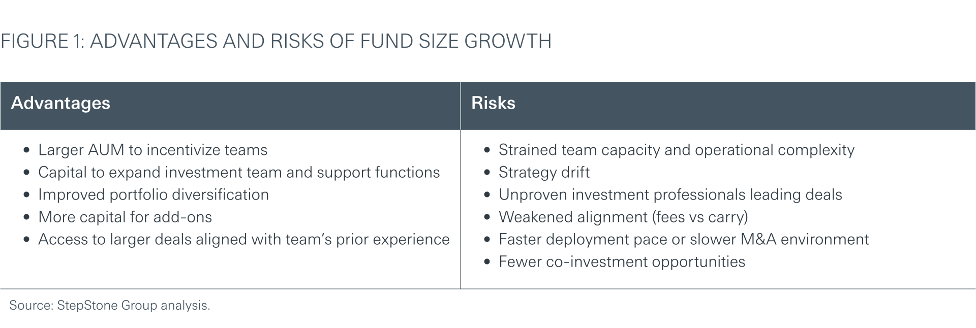 It is natural for fund managers to aspire for growth, but a significant increase in fund size introduces the risk of strategy drift—potentially making historical performance less relevant and stretching team capacity. It may also reduce co-investment opportunities for LPs (Figure 1).